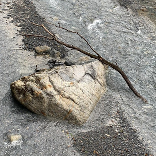 ...un ramo non appoggia il suo esatto baricentro sullo spigolo di una roccia, cominciando a oscillare e trovando un equilibrio che parrebbe illusione. Quel ramo sembra quasi animato, lo vedo respirare. Mi soffermo a osservarlo a lungo: non se ne vuole andare, rimane ancorato chissà come a quella roccia, nonostante la corrente si faccia sempre più grigia e ostinata. Passano giorni, settimane, mesi e io sono ancora lì, ad osservare quel ramo con il quale ormai ho familiarizzato. Nel frattempo sembra avere trovato pace sul letto del fiume, ormai appena bagnato dalle acque. E allora mi chiedo per quanto tempo quest'anima spezzata rimarrà laggiù, attendendo la prossima piena. Ad ogni orario, ogni giorno e ogni notte, con il sole, con la pioggia o con la luna, lo trovo lì. E lui trova puntualmente me, vivo più che mai e con la stessa sensazione di caducità, attendendo il momento più propizio per continuare il mio percorso ma non per questo privo di preziose storie da raccontare.